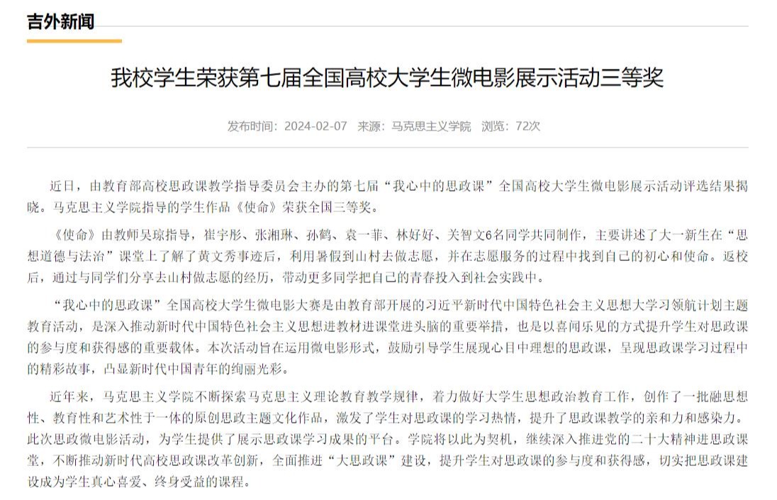 我校学生荣获第七届全国高校大学生微电影展示活动三等奖