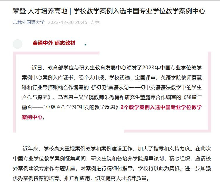 马克思主义学院师生教学案例入选中国专业学位教学案例中心