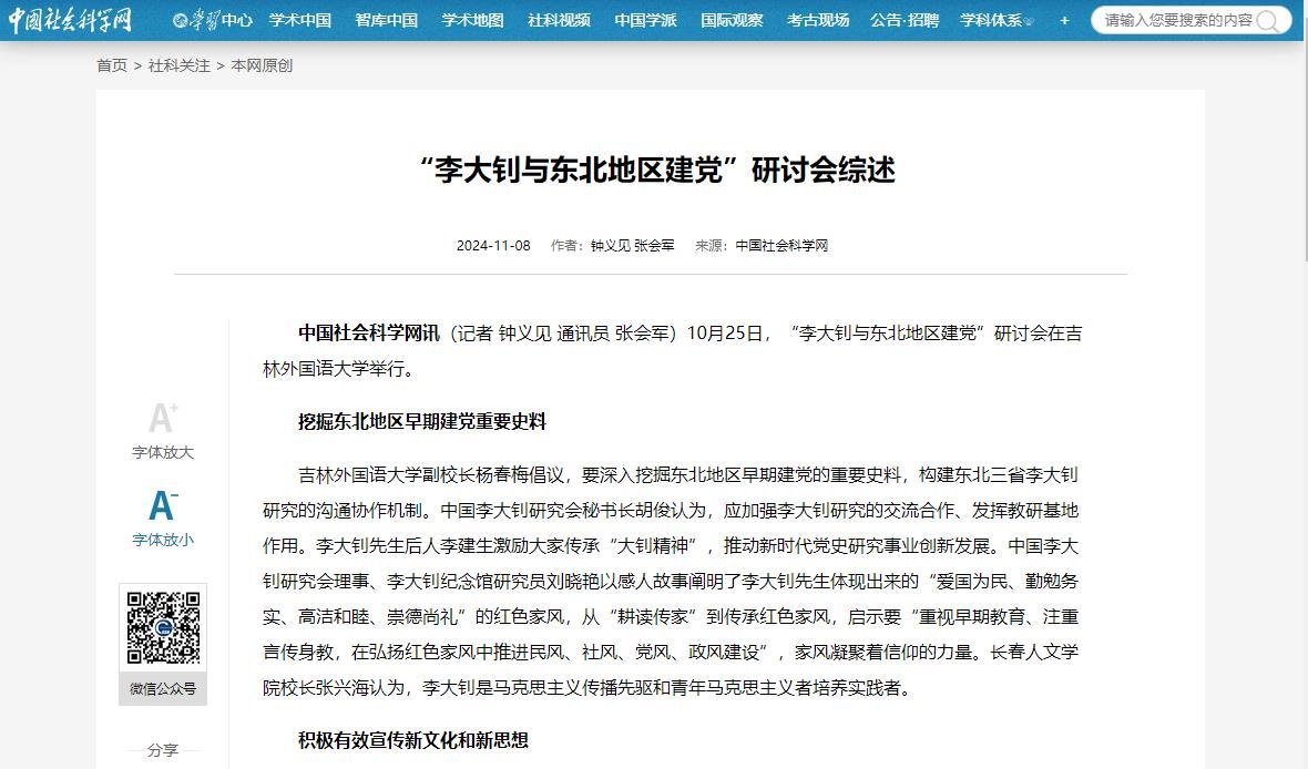 中国社会科学网:“李大钊与东北地区建党”研讨会综述