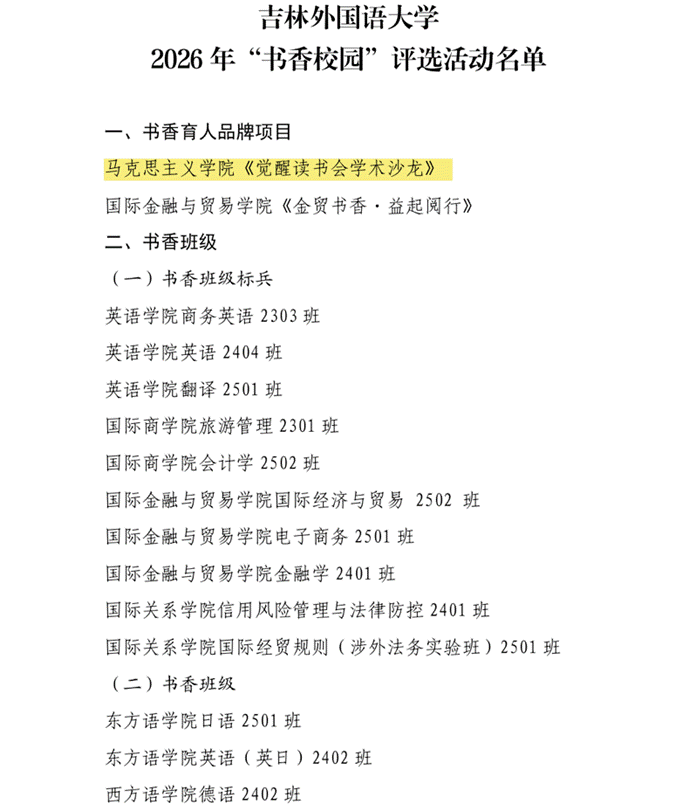 近日,吉林外国语大学“书香校园”系列评选活动结果揭晓,马克思主义学院凭借扎实的阅读育人成果与优良学风,斩获多项荣誉。