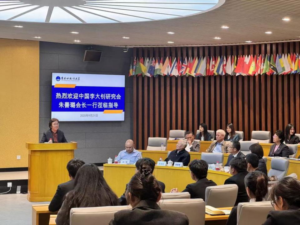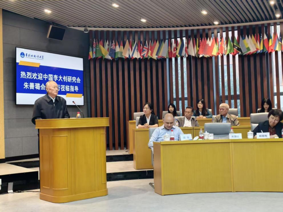 2025年9月20-21日,朱善璐会长一行到吉林外国语大学李大钊教研基地开展调研,并在吉林外国语大学地球村联合国馆与吉林外国语大学马克思主义学院师生、部分优秀思政场馆讲解员进行座谈。吉林外国语大学副校长杨春梅、马克思主义学院院长王长海、李大钊教研基地负责人李红霞等全程陪同,师生80余人参加了座谈会。