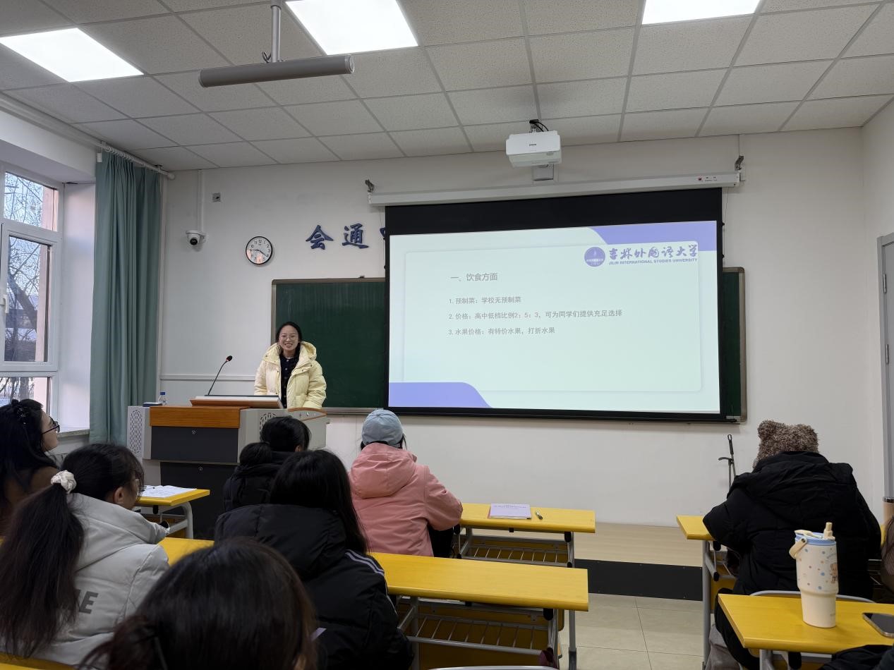 班会最后,辅导员王新雅老师对本次班会的进行总结发言。对本月的期末考试、四六级考试、研招考试纪律以及寒假假期安全等问题进行了重点强调,提醒同学们合理规划复习时间,遵守考场规则,杜绝作弊行为,同时注意出行安全,增强防范意识。她还鼓励大家在紧张备考之余,积极参与体育锻炼和集体活动,保持良好身心状态,以积极向上的心态迎接各项挑战。